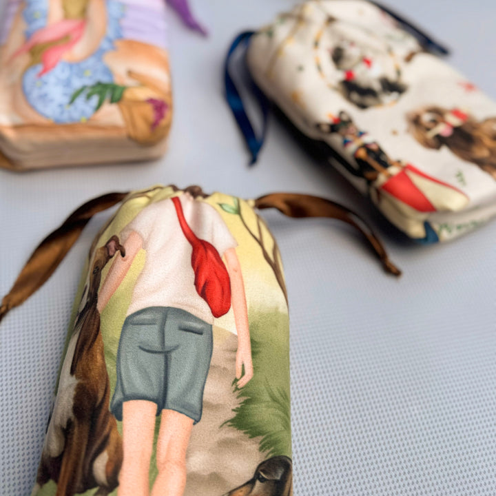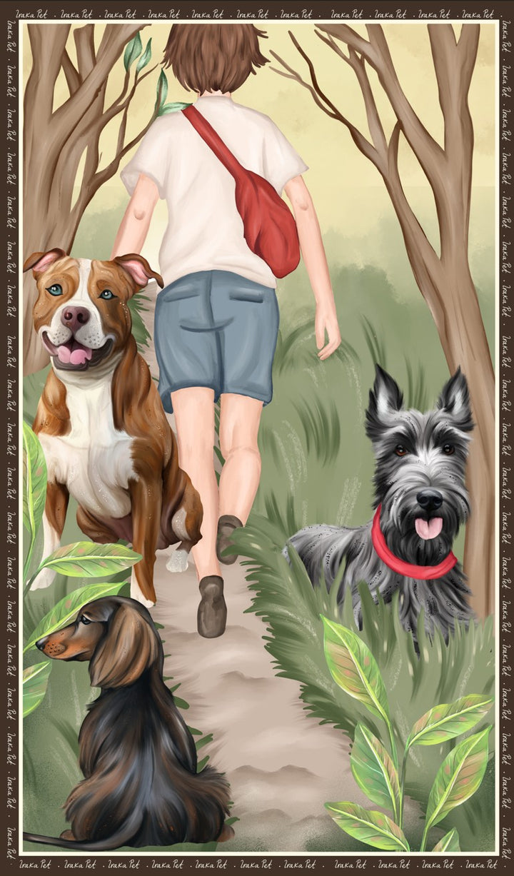 Elaborada en microfibra ultra absorbente y de secado rápido, esta toalla combina funcionalidad y belleza. Su textura suave protege el pelaje de tu perrito, mientras su ilustración te invita a revivir el espíritu libre y curioso de cada paseo juntos.